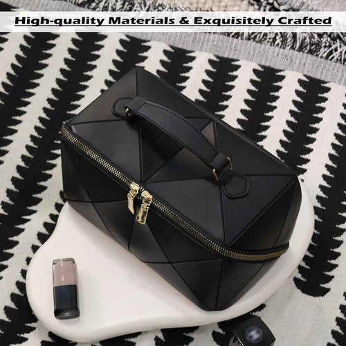IMCUZUR Travel Makeup Bag Large Cosmetic Bag for Women, Open Flat Make up Bag Portable Skincare Bag with Handle (Black)