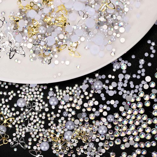 CUBLIVE 3D Nail Charms Set, Colorful Flower Bow Heart Star Butterfly Nail Art Charm, Half Round Pearl & Flatback AB Rhinestones, Nails Decorations Accessories Supplies