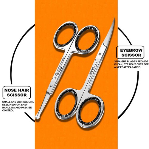 Promax 2-in-1 Nose Hair & Eyebrow Scissors Set – Stainless Steel Grooming Shears with Rounded Safety Tip & Curved Blades for Men & Women – Beard, Mustache & Facial Hair Trimming Scissors Kit