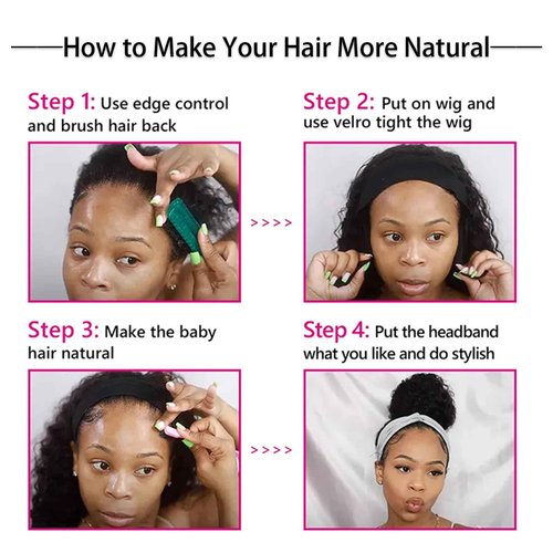 Lauberita Chocolate Brown Headband Wig Human Hair for Women #4 Deep Wave Headband Wig Glueless Curly Human Hair Wig 14 Inch