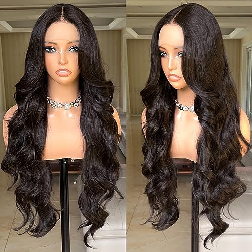 30 Inch Lace Front Wig Body Wave Wig Pre-Plucked with Baby Hair Natural Color Glueless Wig for Women Curly Wave Synthetic Lace Front Wig