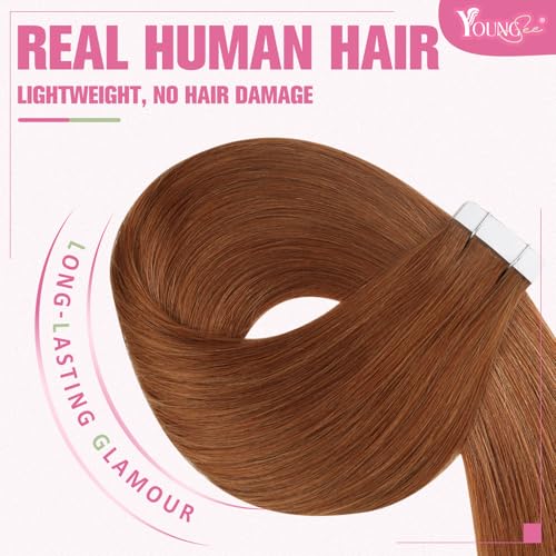 YoungSee Tape in Extensions Copper Human Hair Extensions Tape in 16 Inch Invisible Tape in Hair Extension for Women 20Pcs 50G