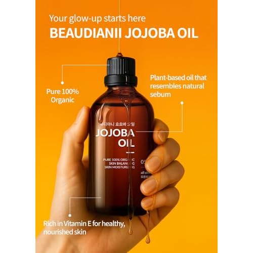 BEAUDIANI Organic jojoba Oil 100ml (3.38 fl.oz) 100% Pure Organic Natural Golden Oil, Cold Pressed Virgin, Vitamin E Oil, Moisturizer for Skin, face, Body, Hair, Nail, Israel Origin
