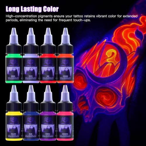 Tattoo Ink Set, UV Tattoo Inks Pigment Set Long Lasting Color with Fluorescent Lamp 8 Colors 1/2oz (15ml) Professional Fluorescent Tattoo Ink for Artist