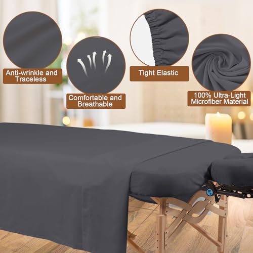 4 Sets Premium Microfiber Massage Table Sheets Set 3 Piece Set Includes Massage Table Cover Fitted Sheet and Fitted Face Rest Cover, Grey