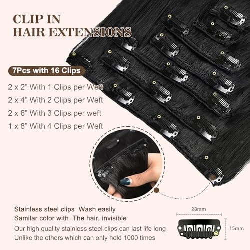 Clip in Hair Extensions Real Human Hair 120g 7pcs Human Hair Clip in Extensions 14 Inch Jet Black #1 Thickened Straight Real Hair Extensions Clip in Human Hair