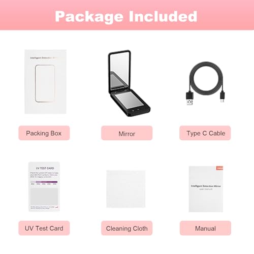 Compact UV Mirror with UV Camera for Sunscreen Test, 4 Inch Rechargable Travel Mirror Handheld Double-Sided Pocket Mirror for Skin Protection