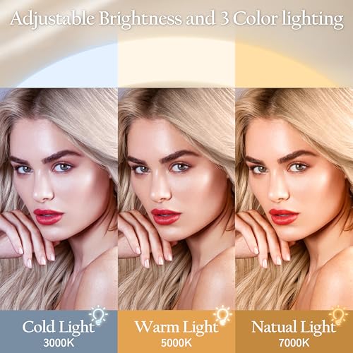 - ¡¼3-Color Lighting & Stepless Dimming¡½Featuring three adjustable color settings (Cool White, Warm White, Natural White) for diverse makeup environments. Effortlessly slide your finger for precise brightness control (0-100%), ensuring shadow-free, even illumination every time.