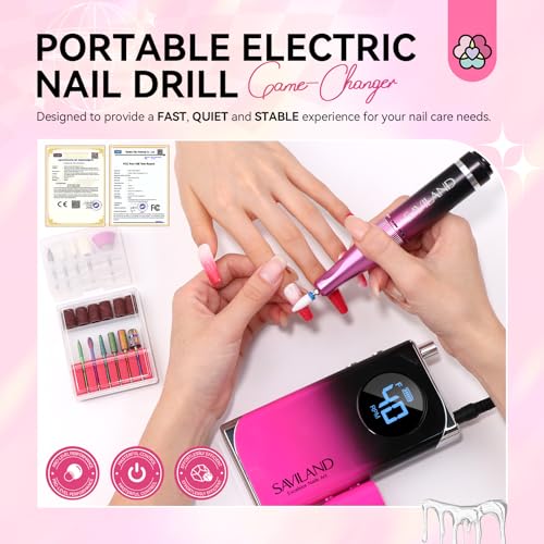 SAVILAND Professional Electric Nail Drill Machine: 40000RPM Rechargeable Nail Drill File with 4000mAh Battery, Ceramic Bit and Sanding Bands for Manicure, Pedicure, Shaping & Acrylic Removal Salon Use