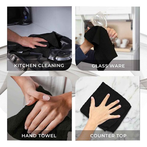 Avalon Towels Cotton Washcloths – (Pack of 24) Size 12x12 Inches, 100% Ring Spun Cotton, Soft & Absorbent Face Towels, Gym Towels, Hotel and Spa Quality, Reusable Fingertip Towels (Black)